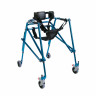 Ходунки на четырех колесах реверсивного типа предназначены для детей-инвалидов, страдающих различными формами ДЦП, способствуют устранению нарушений осанки и патологической установки стоп, помогают удерживать равновесие при ходьбе и стоянии.