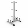 Подставка под гантели выдерживает нагрузку до 200 кг, держатели для дисков – до 100 кг. На стойке 7 посадочных мест для дисков. Помимо дисков и гантелей, на стойке возможно разместить 4 грифа без дисков длиной от 120 см.