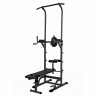 В комплекте идет прямая скамья. С помощью парных крючков на раме турника возможно установить скамью под разным углом для выполнения различных упражнений.
